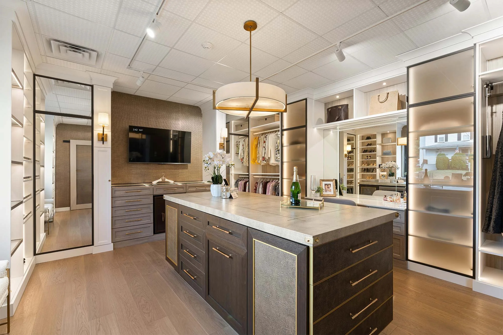 At Herb & Oak, we transform inspiration into reality — partnering with designers who share our vision for elegance, function, and purpose. This custom closet showcases dark wood with gold accents, warm tones, and soft integrated lighting that create an atmosphere of refined comfort. Every drawer, shelf, and compartment is thoughtfully designed to bring organization, beauty, and suit your needs.